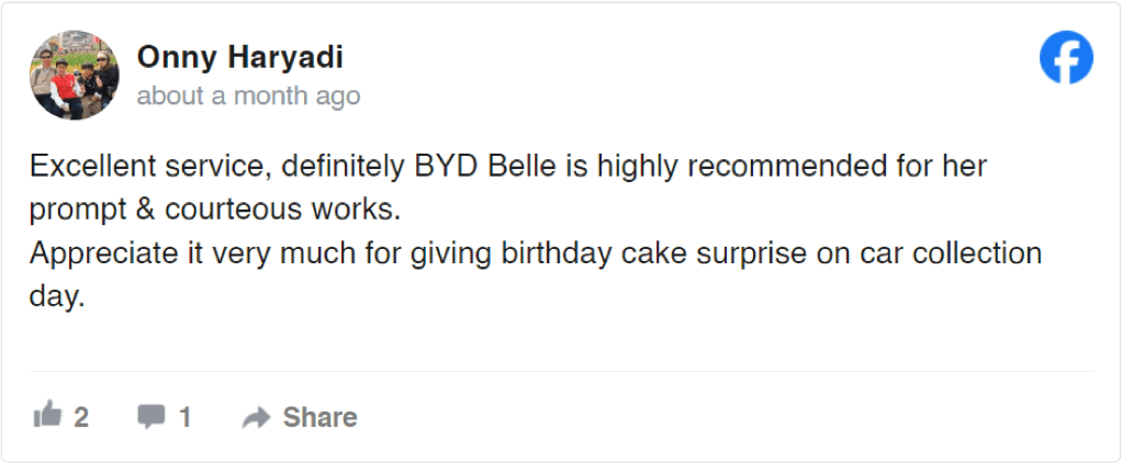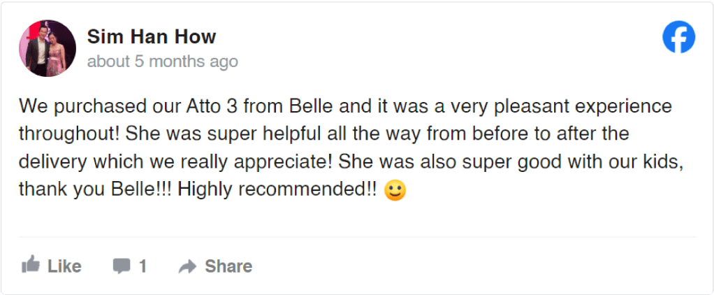 Hey there! I’m Belle Yap, your go-to BYD Sales Advisor. With years of experience and a passion for helping customers, I’m here to make your car-buying journey easy. Explore our latest promotions with me and find the perfect vehicle for your lifestyle. Get in touch today!