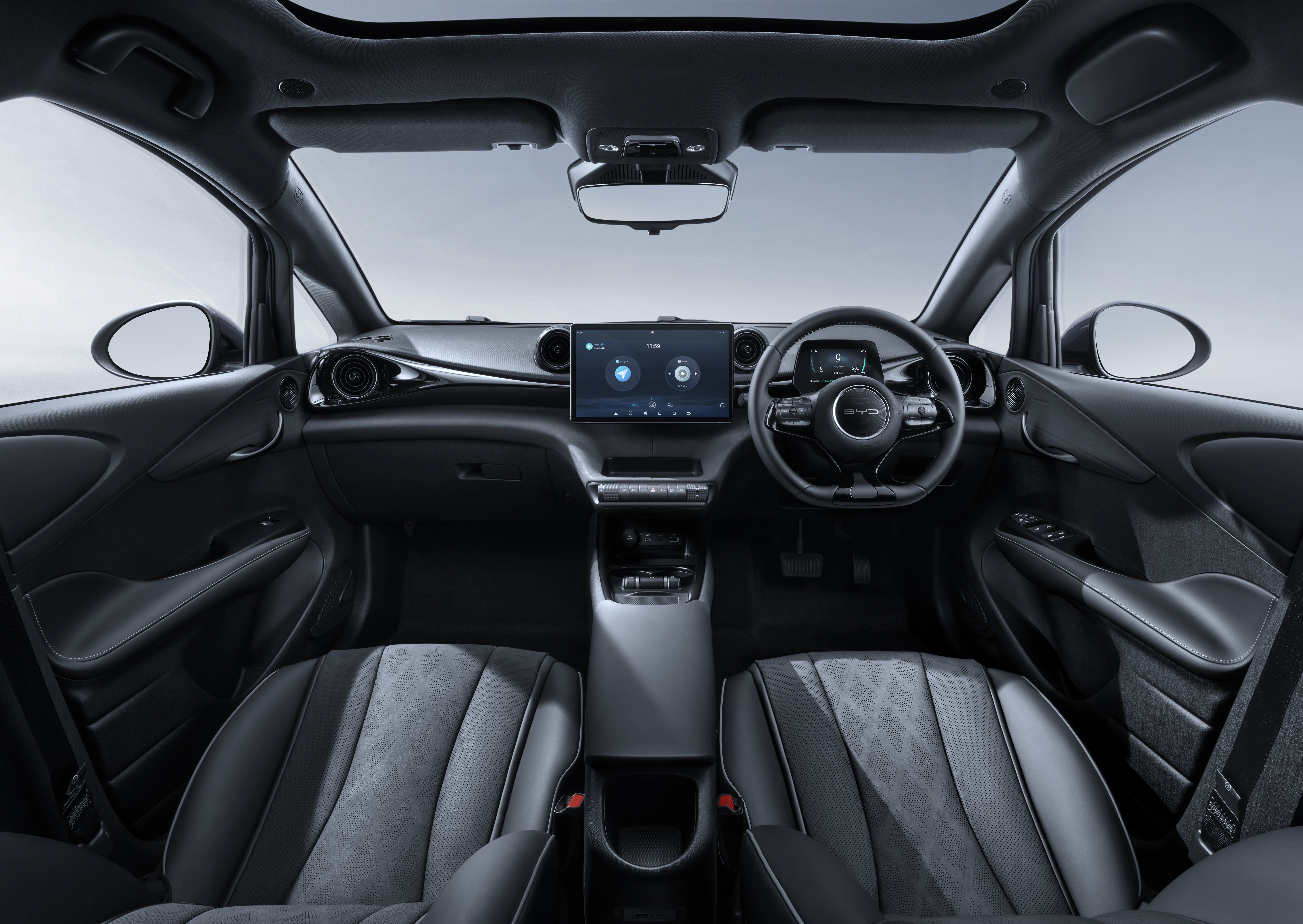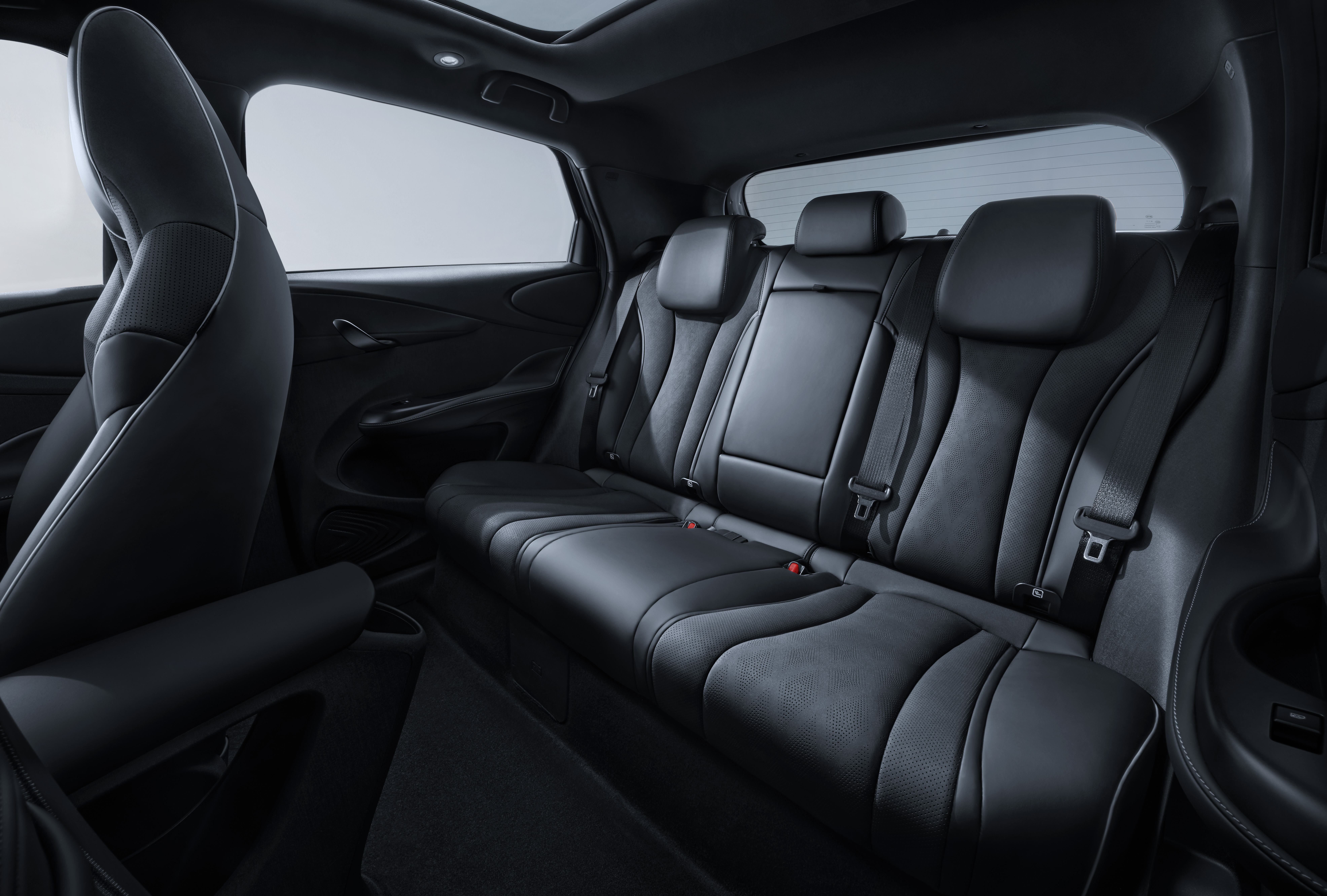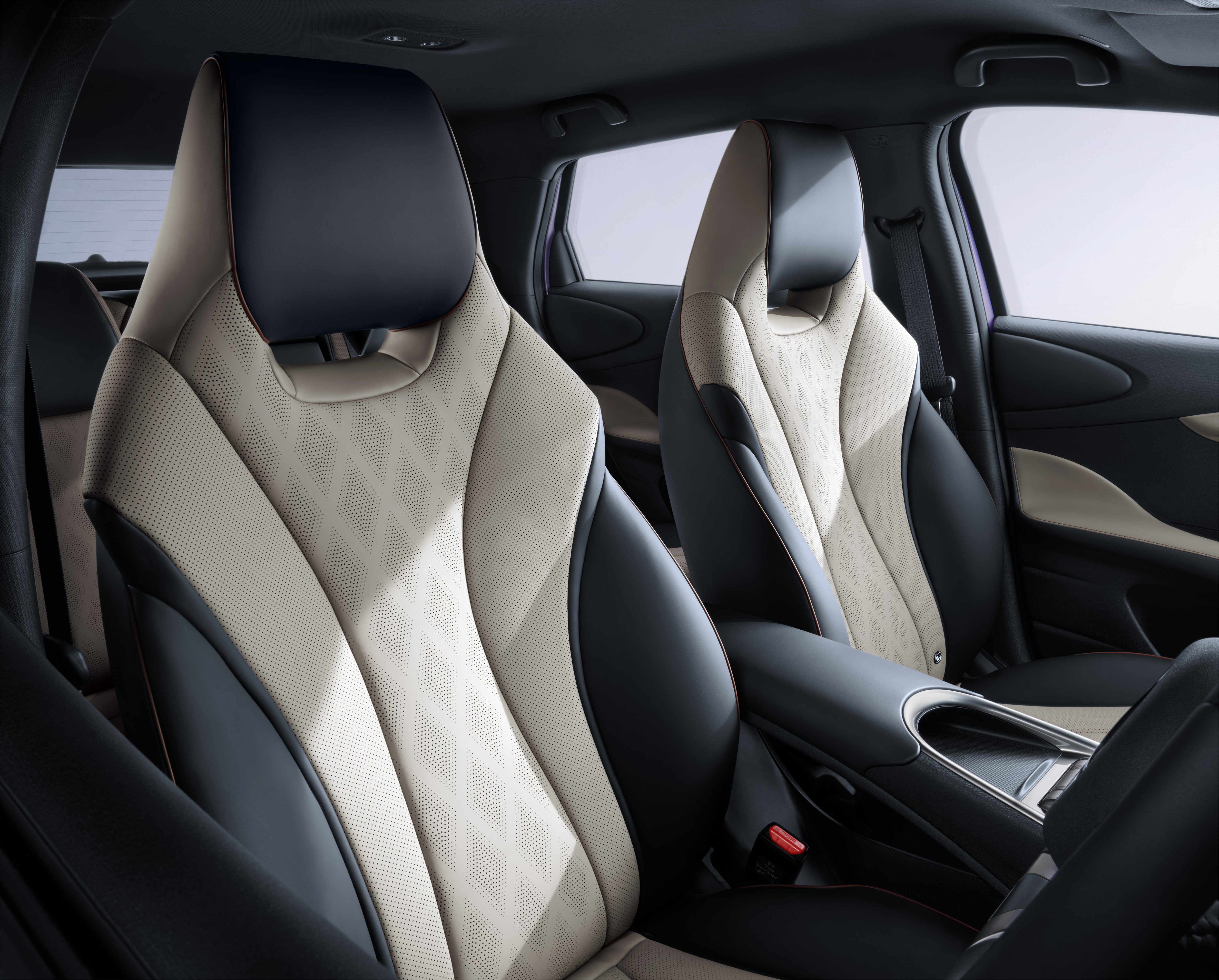 The integrated sports seats offer long-distance comfort as well as strong lateral support during cornering. These seats are made from sustainabThe futuristic suspended centre console design creates a modern, dynamic driving environment with its metal trim detail that runs across the entire dashboard, forming a beautiful, minimalist curved surface.le vegan leather, offering an eco-friendly solution without compromising on style. With multiple-way adjustment, you can customize your seat to your every need.